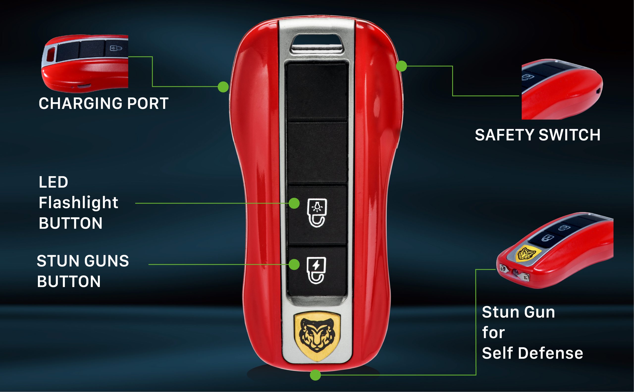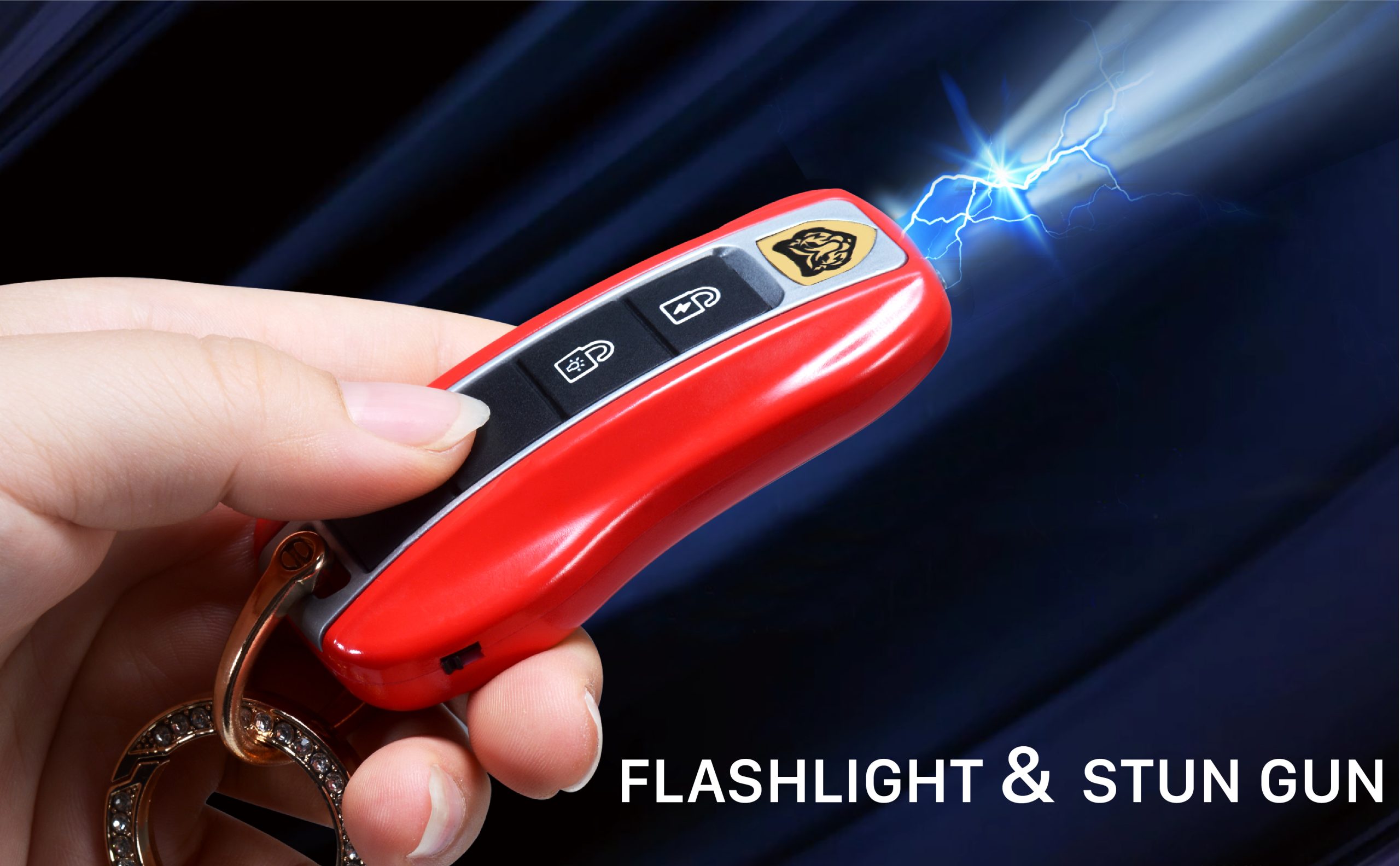 Mini Red Stun Gun with LED Flashlight and Wrist Strap, Porsche Car Key Stun Guns, Unique Key fob Design
