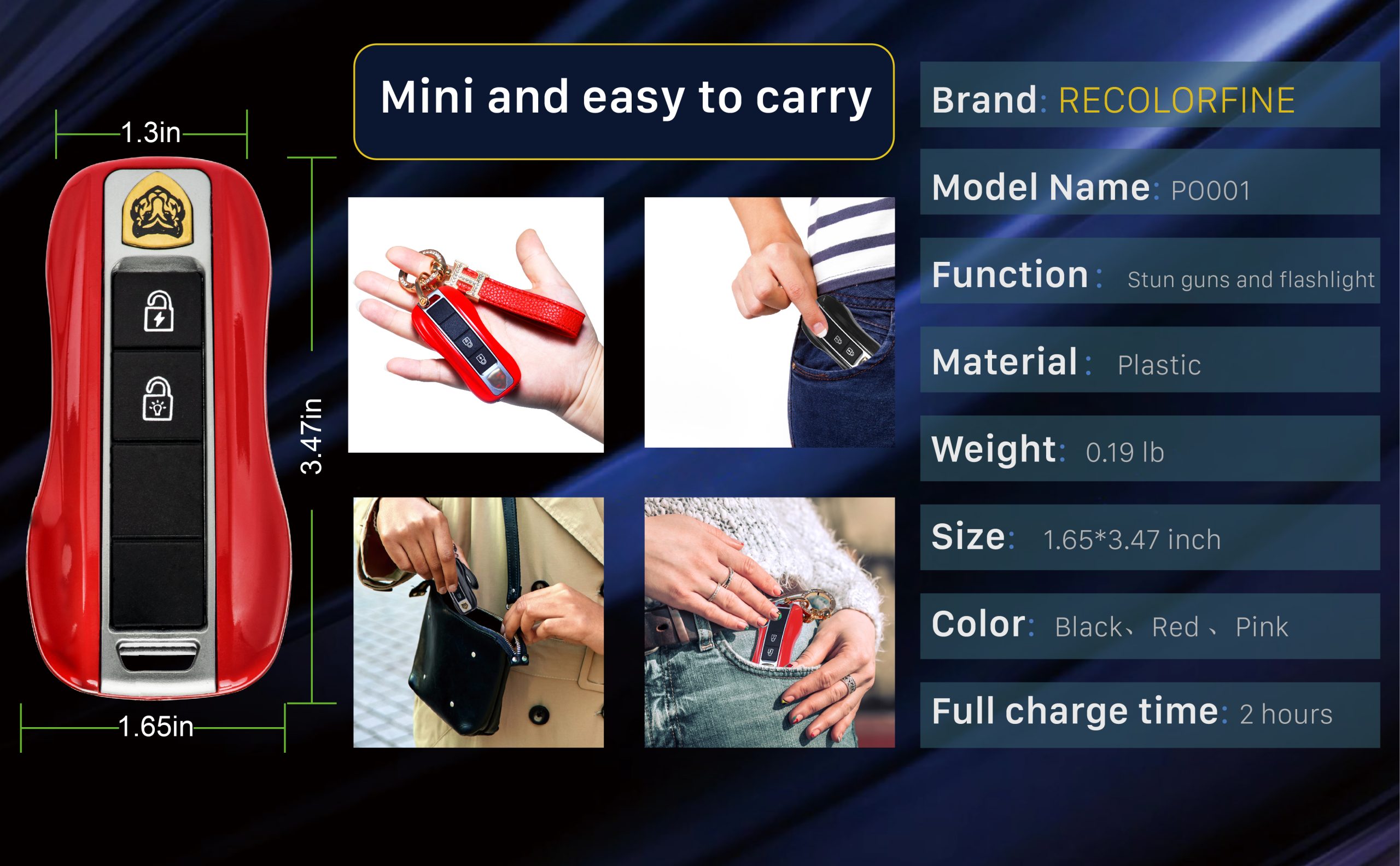 - 【USB CHARGING & PORTABLE】: No need to waste money buying batteries for stun guns。The keychain is wrist wearable via lanyard. Easy to identify in purse or pocket. Features: Can carry multiple keys or little parts, easy to remove.