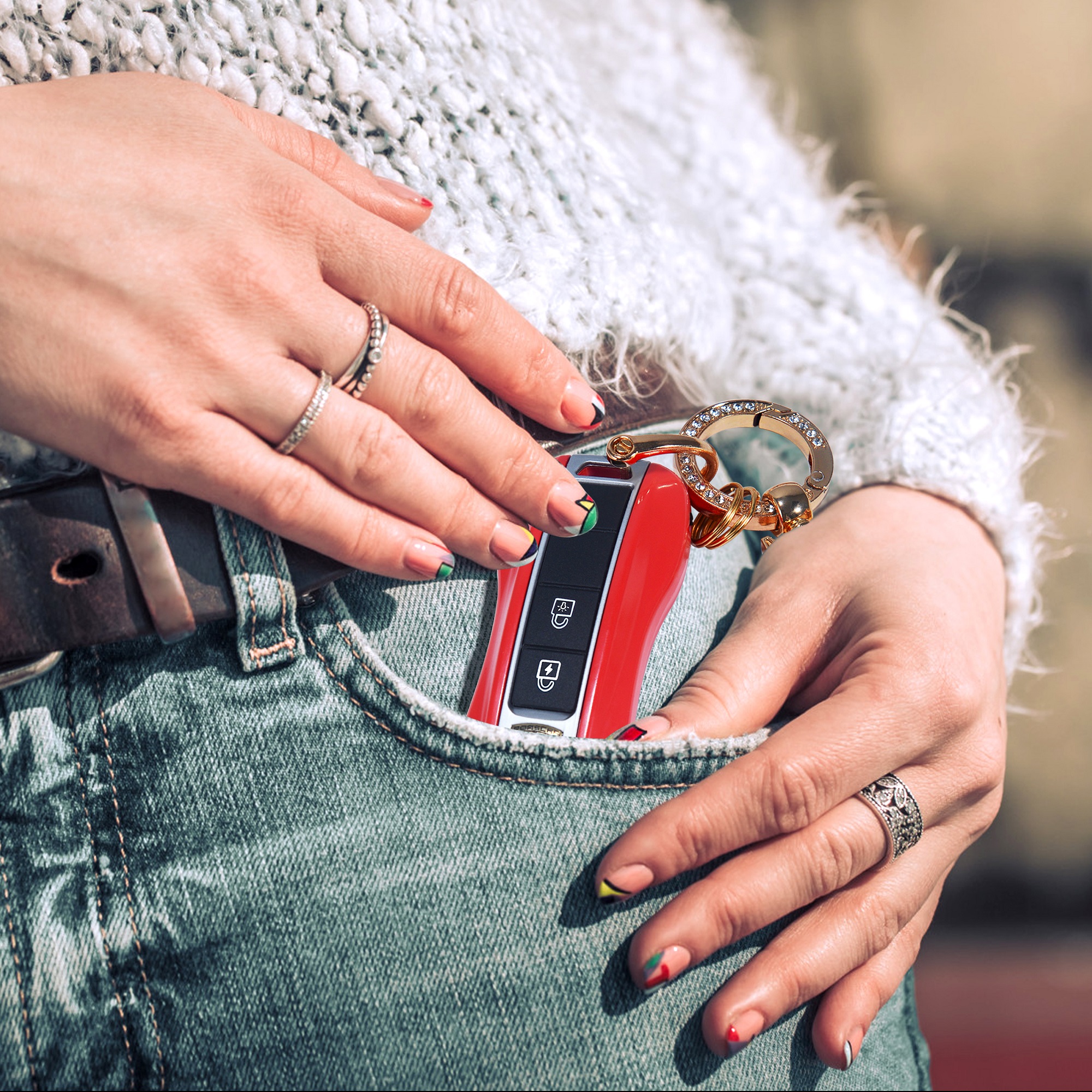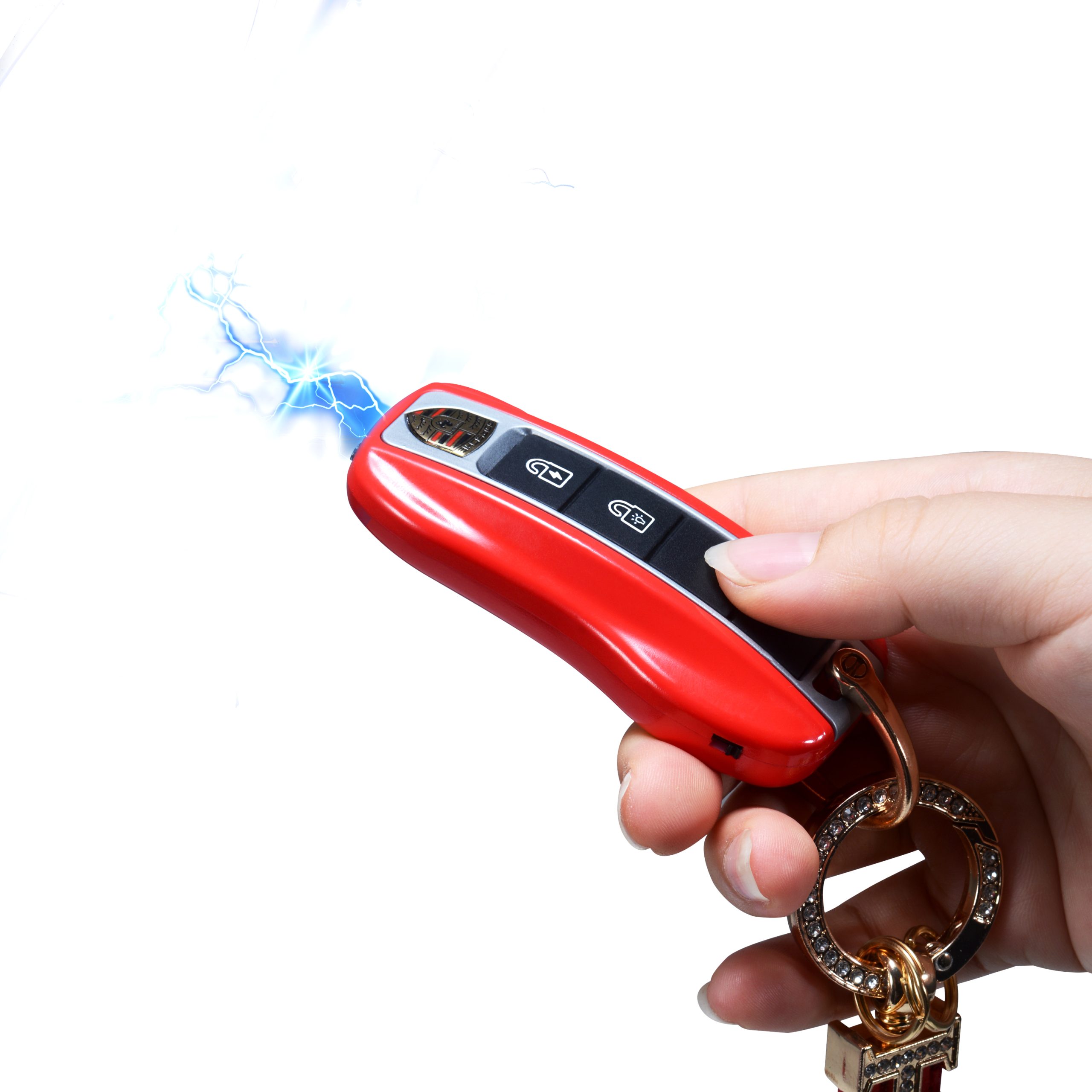 Mini Red Stun Gun with LED Flashlight and Wrist Strap, Porsche Car Key Stun Guns, Unique Key fob Design